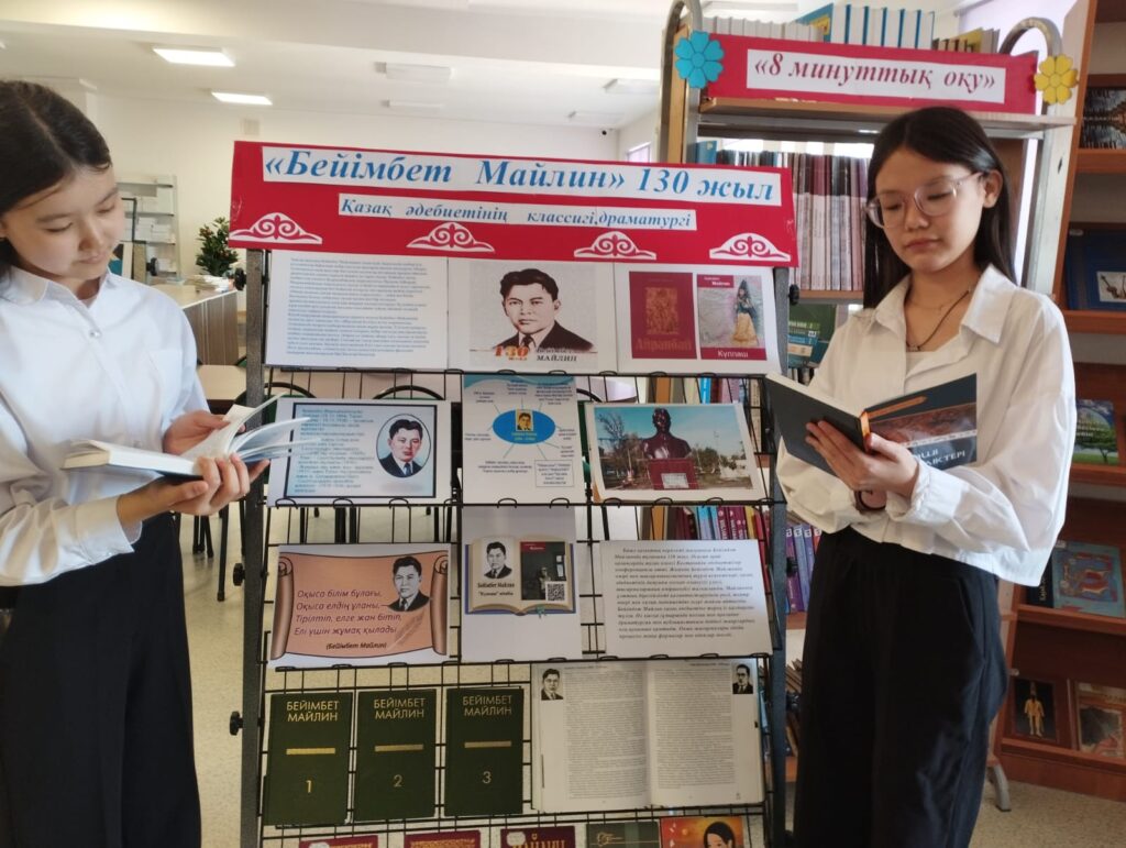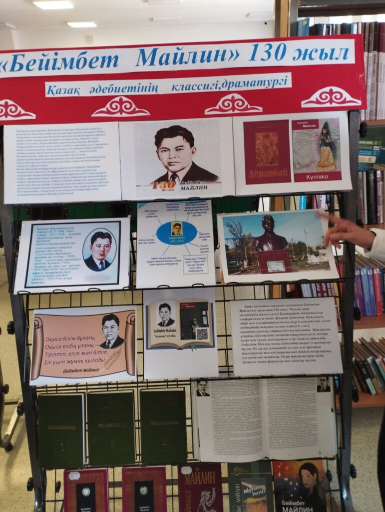 №25 орта мектеп кітапханасында «Бейімбет Майлин» 130 жас атты тақырыптық сөре ұйымдастырылды көрмеге «Шұғаның белгісі», «Бейімбет Майлин» көп томдық кітаптары т.б көрнекілік картиналары қойылды.